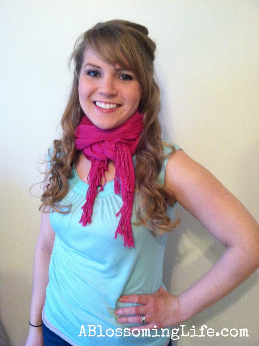 How cute is that?! I don’t get to wear scarves much, but I love all the ways you’ve thought of to make them look so good!